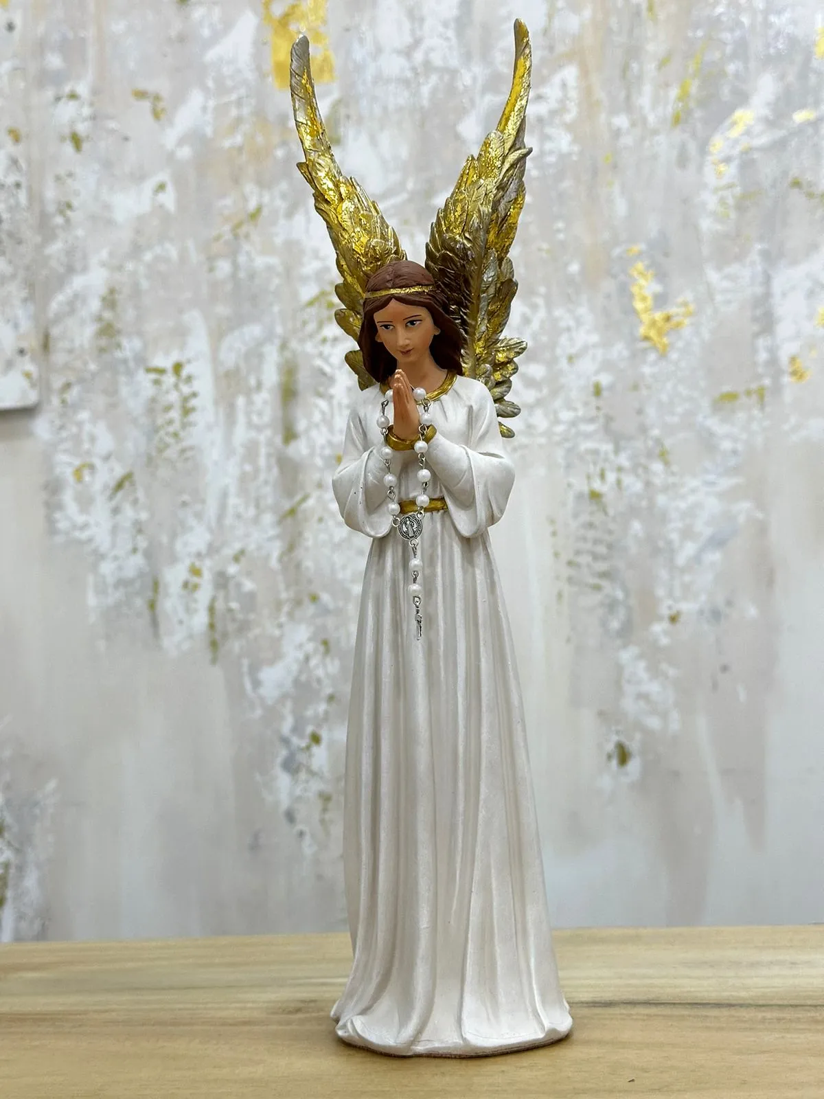 Ángel de la oración de 40 cm, elaborado en marmolina