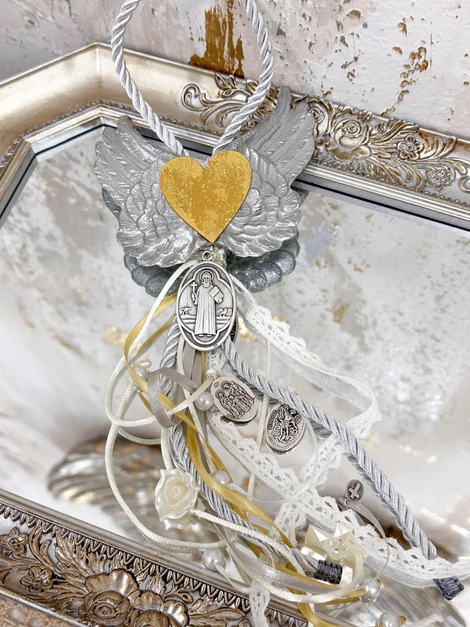 Lleva paz, protección y amor a cualquier espacio con esta bendición especial. Con medallas sacramentales, alas de ángel, corazones y rosas que simbolizan cuidado, oración y fe, es más que un accesorio: es un recordatorio vivo de tu conexión espiritual. Recuerda que las medallas deben ser bendecidas por un sacerdote y que su poder también radica en la fe y el conocimiento con el que las recibes. No se trata solo de tenerlas, sino de comprender y vivir su significado.
