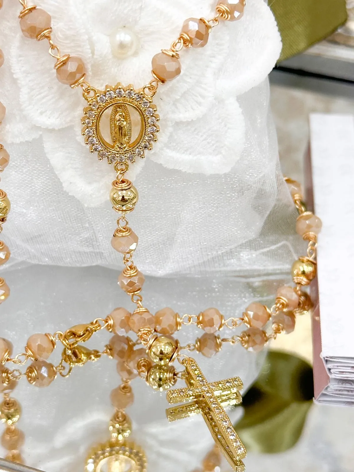 Se entrega empacada para regalo, incluye guía para rezar el Santo Rosario.