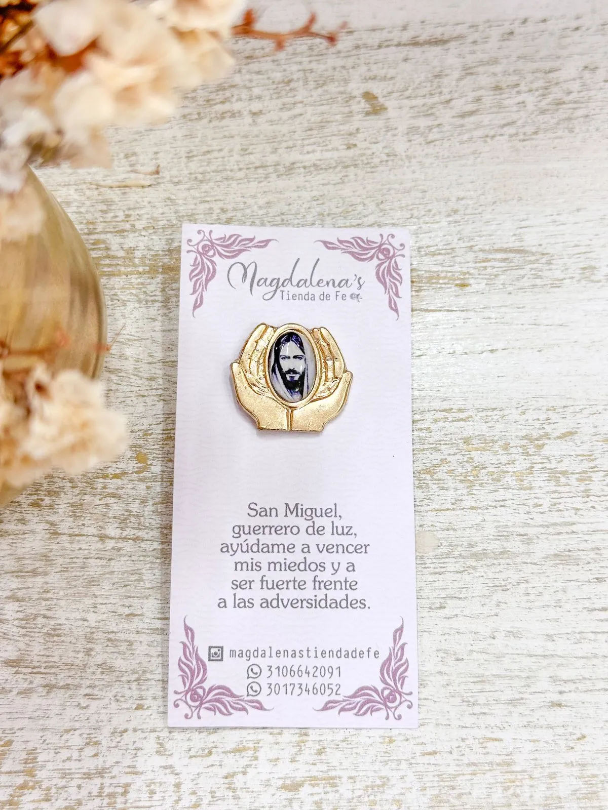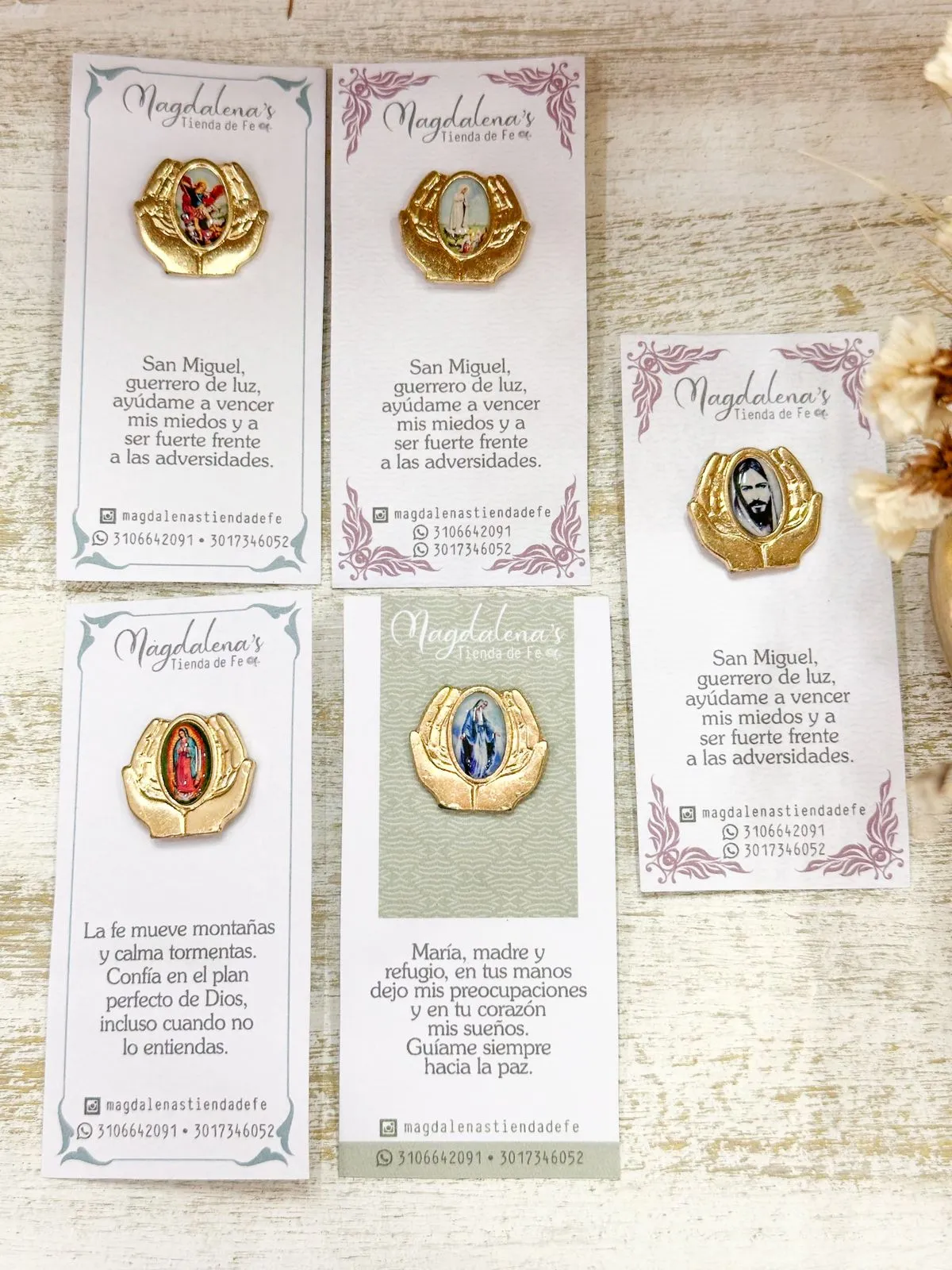 Los pines Magdalena´s van con estampita como esta en la foto de referencia, si se compran mas de 12 se puede personalizar la estampita.