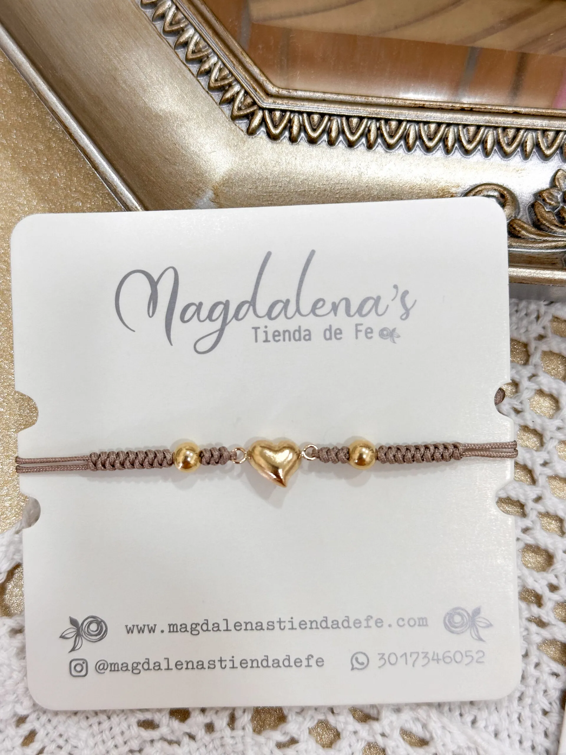 Pulsera elaborada en hilo, herrajes dorados en oro laminado 18k.